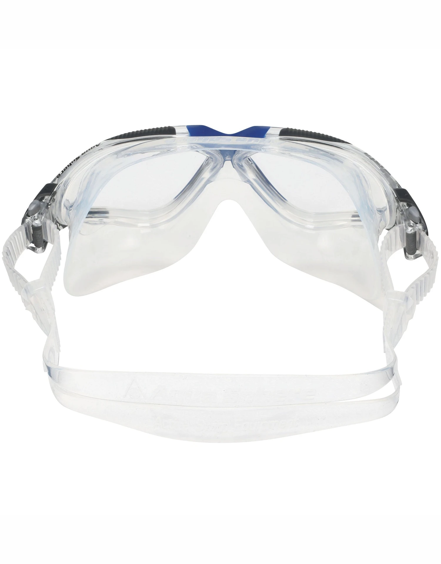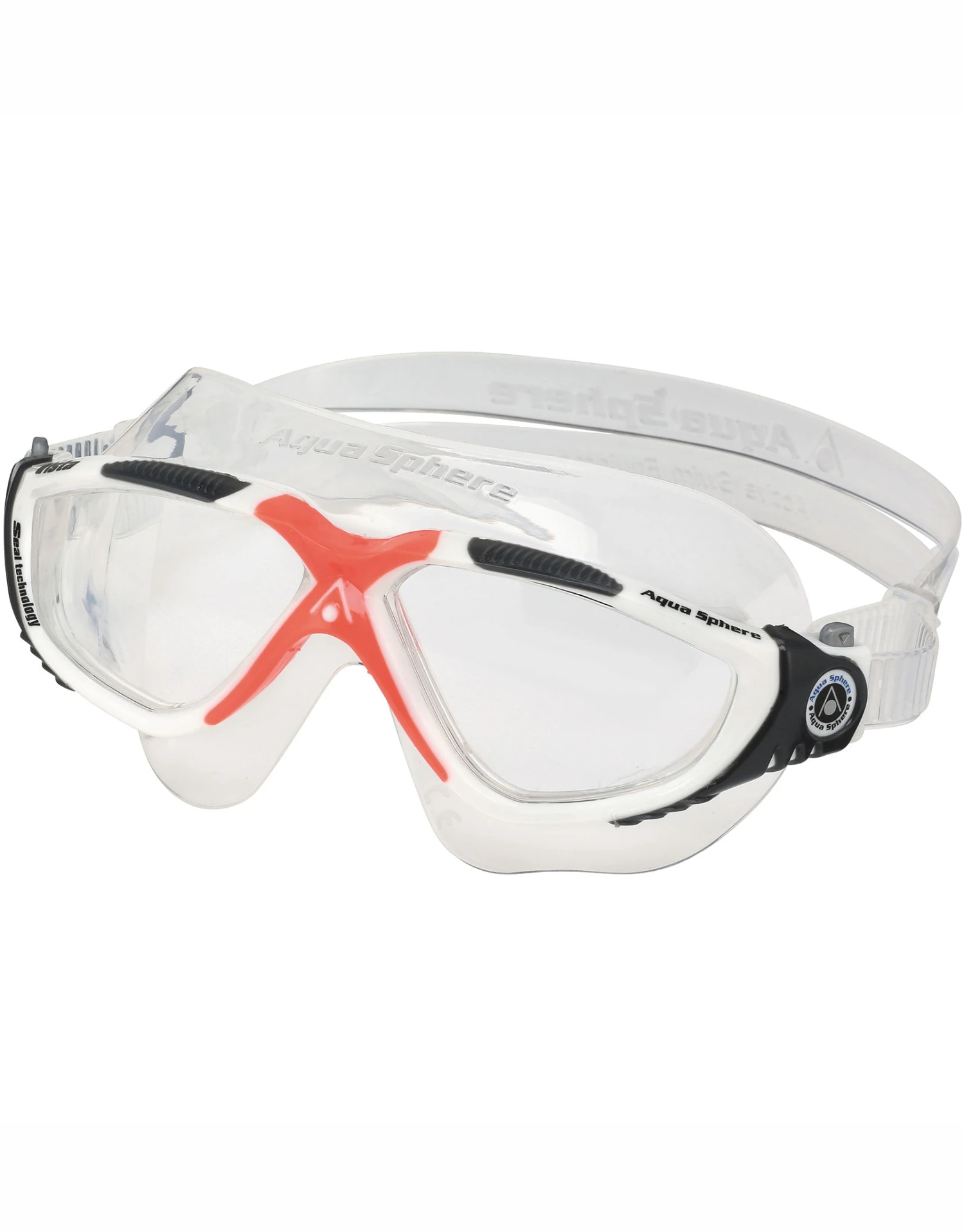 The Vista Mask with a clear lens is a mask style swim goggle that gives a superb seal and crystal clear vision. Designed in a wrap-around style to give 180 degree panoramic vision, this swim goggle is extremely low profile which virtually eliminates the drag experienced with other swimming masks. The Quick Fit buckle makes it easy to adjust and fit. It’s great for swimming, triathlon and any water sport.