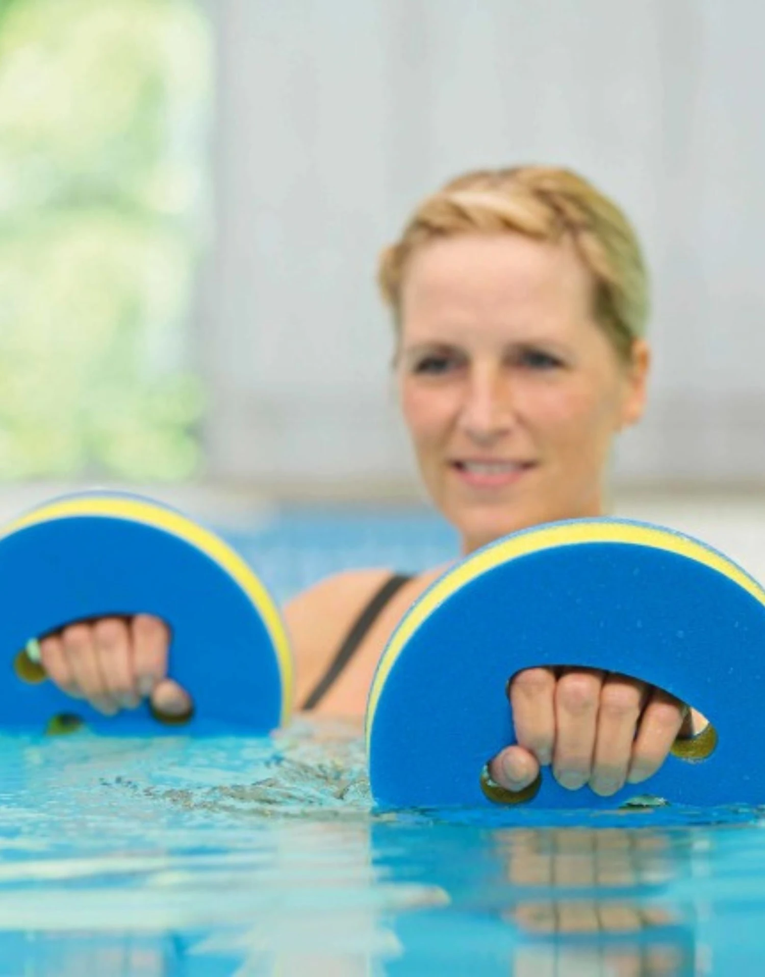 The COMFY® AquaFit Smile discs are a great pair for aquatic training. The handy, easy-to-use Smiles handlebar offers increased water resistance for an enhanced session, making them particularly well suited for building muscle, promoting balance, and improving coordination.