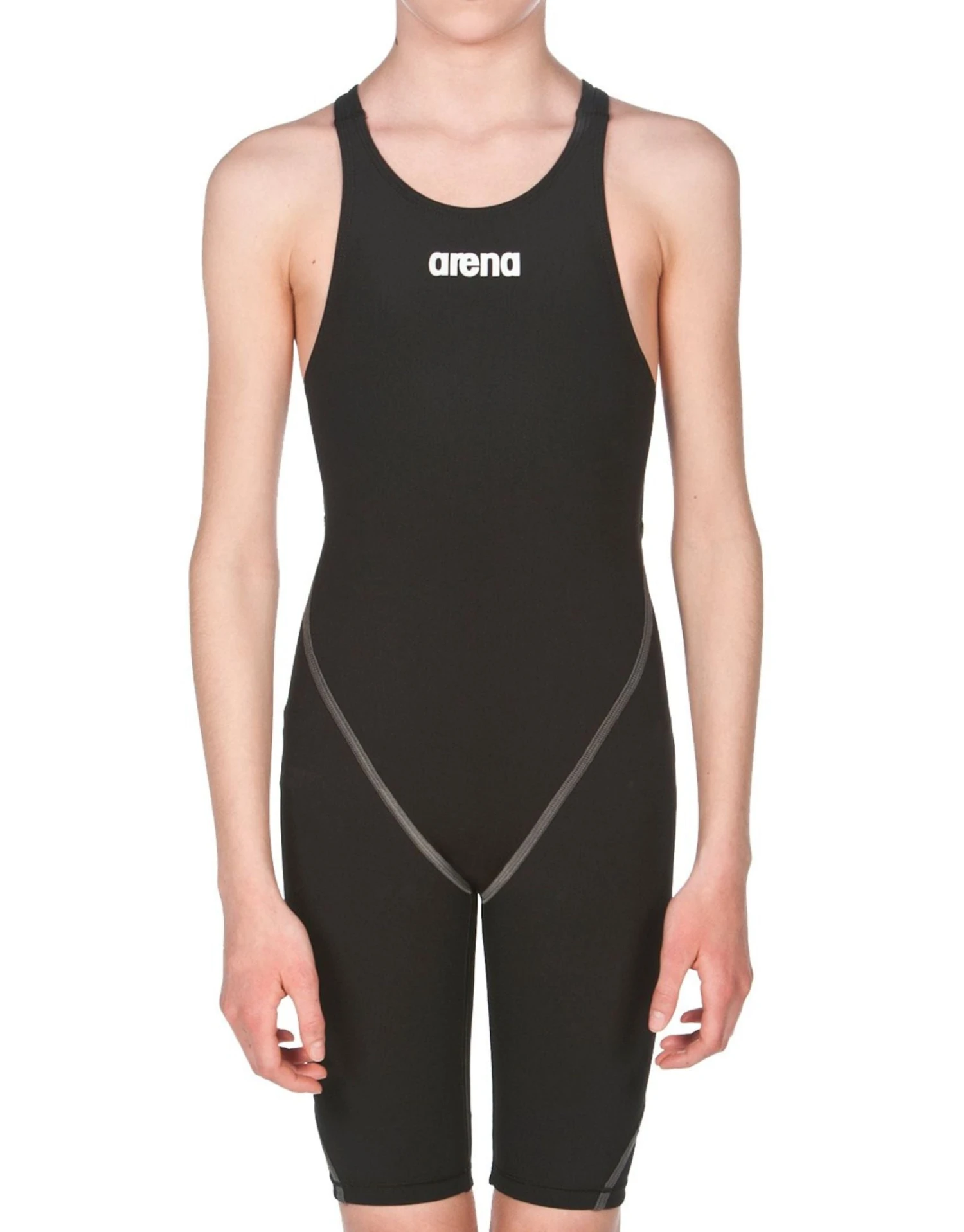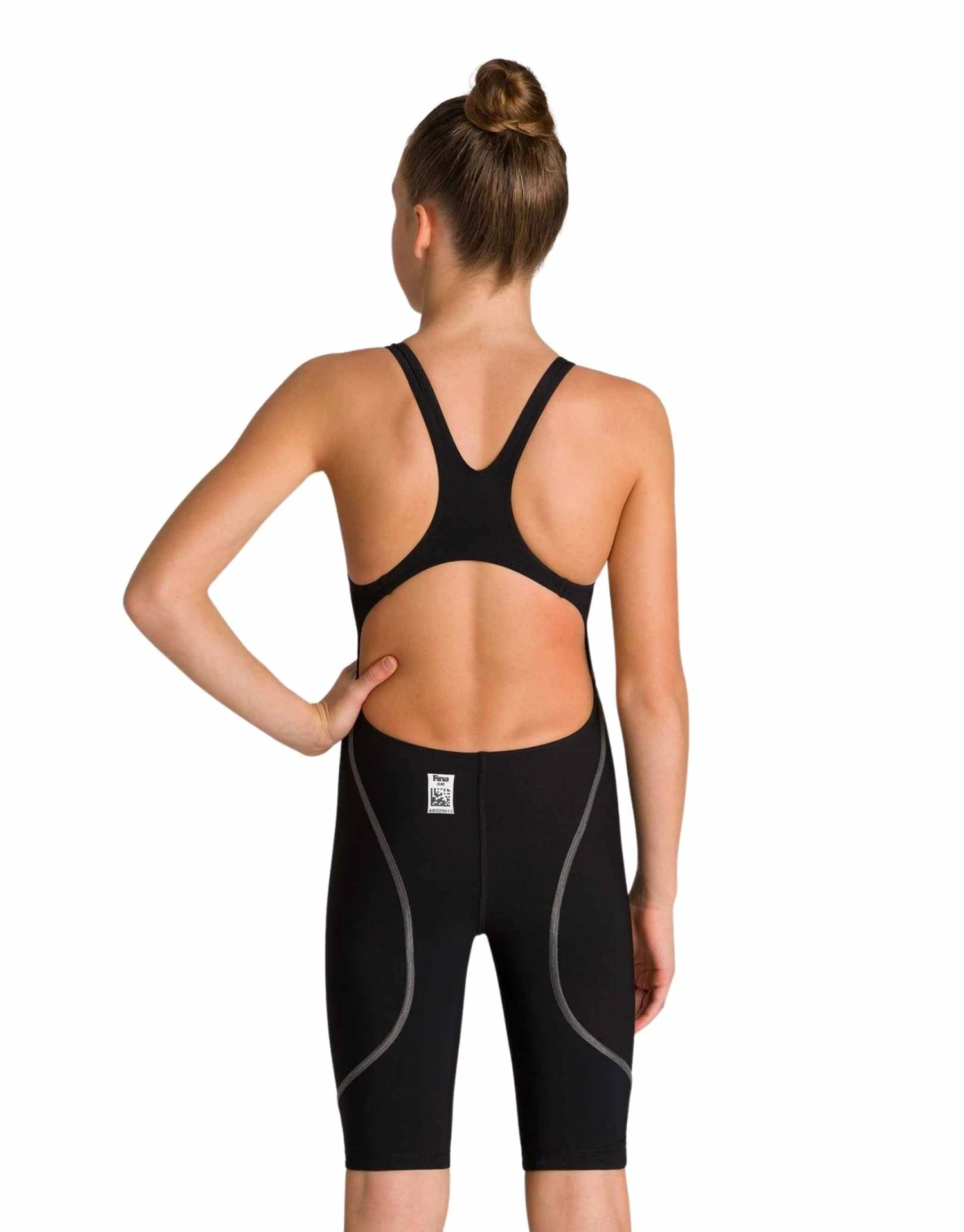 - FINA-approved girls’ racing swimsuit – with open-back streamlines the body from shoulders to knees