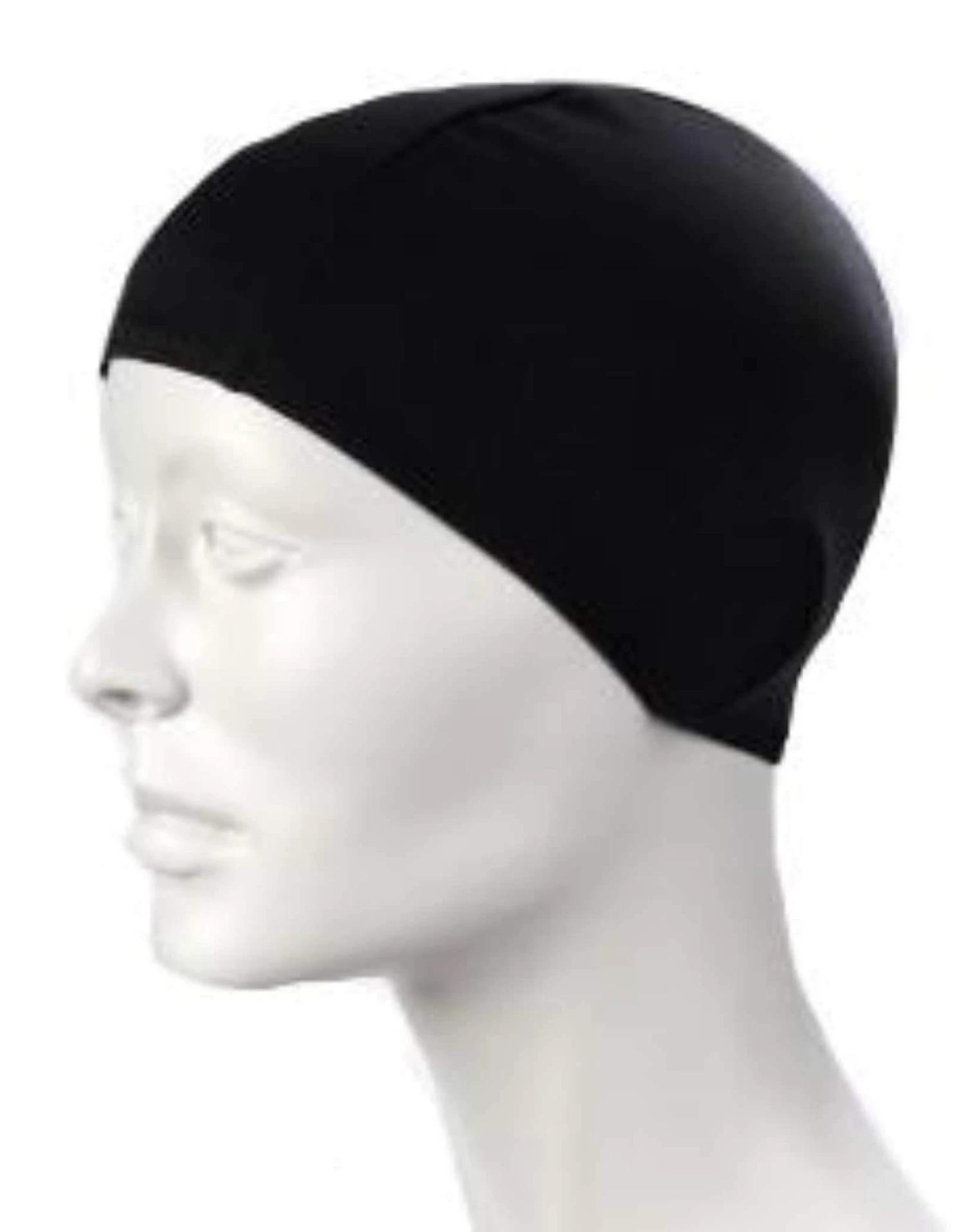 This fabric cap is 100% polyester giving a comfortable fit, in a stylish design. These caps can be worn on their own (although they are not waterproof so your hair will get wet) and can also be worn by swimmers under a latex or silicone swimming cap to reduce hair pulling, increasing comfort. Whichever way you choose the comfortable and lightweight fabric is of superb quality and at a bargain price.