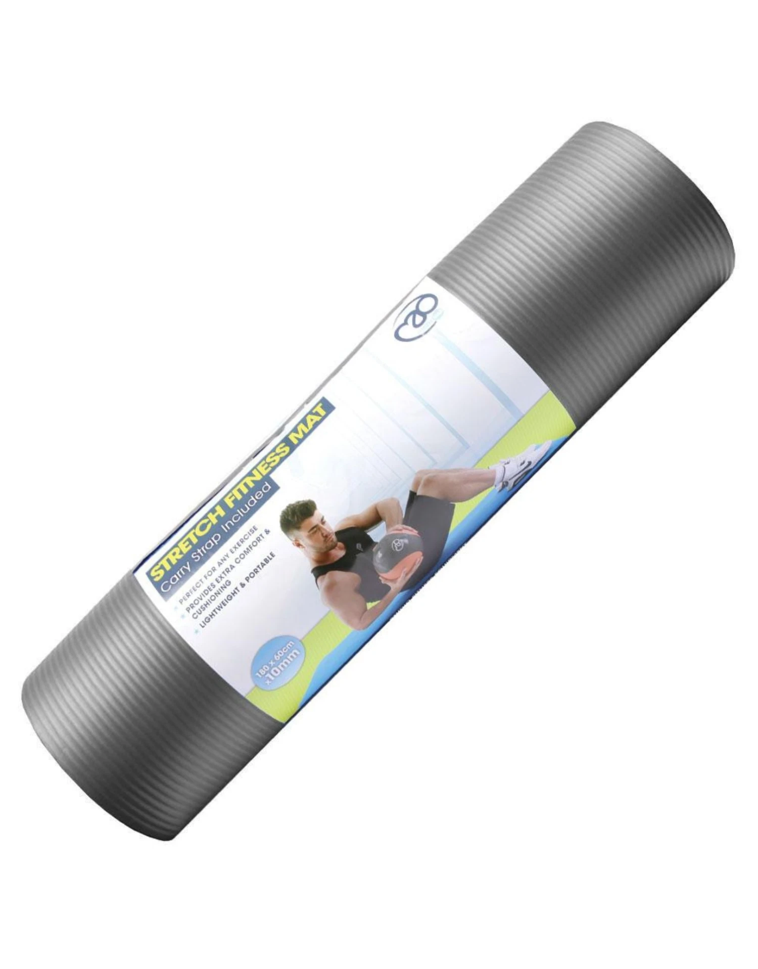 The Fitness-Mad Stretch Fitness mat is perfect for all kinds of exercise and stretching from aerobic workouts to rehabilitation. Lightweight and easily transportable with the use of the included carry strap means you can take the mat with you to your Pilates class, gym, club or studio! Being 10mm thick it’s perfect for providing cushioning and comfort for exercises performed on the floor as well as mat work Pilates.