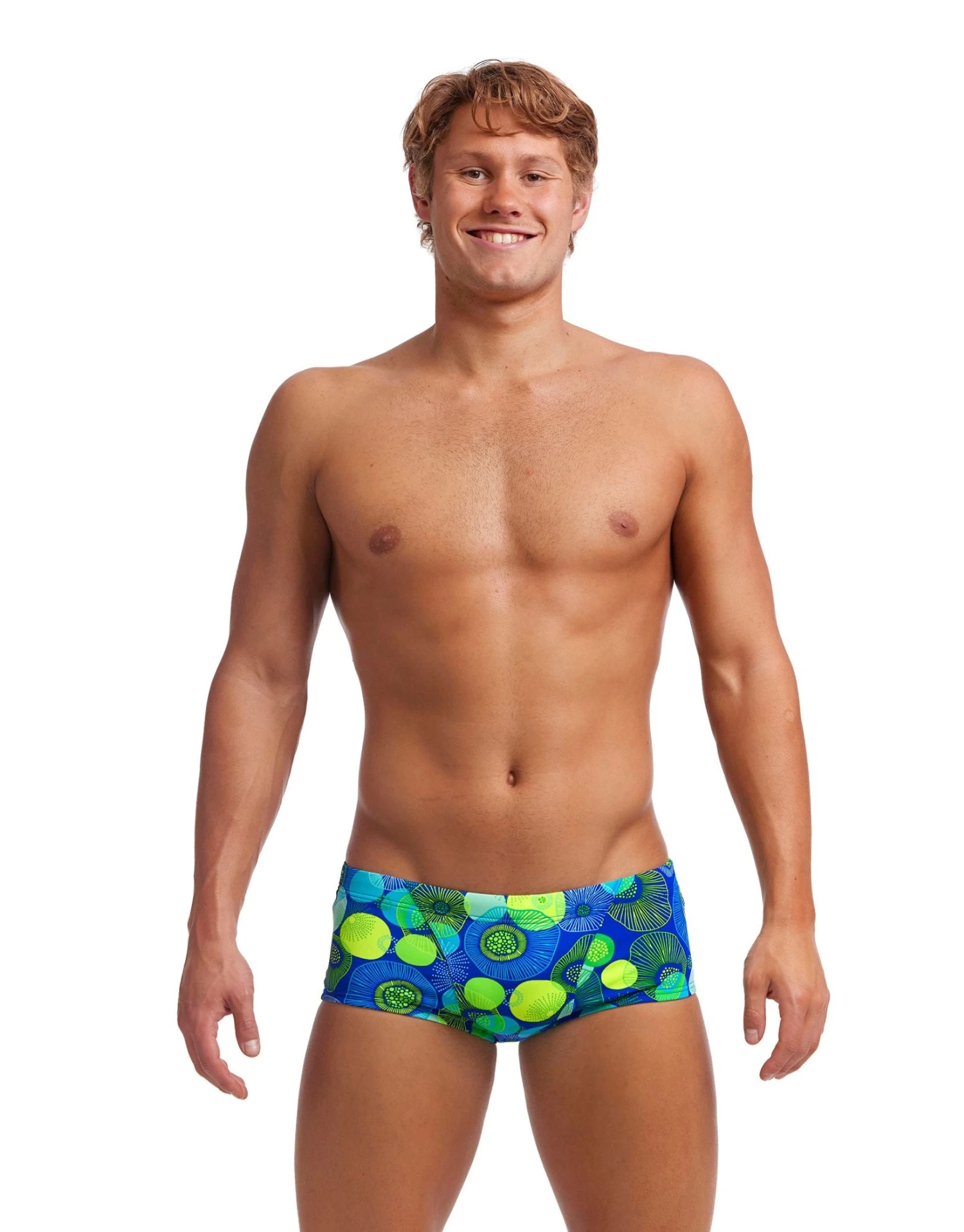 The Blue Bottle Classic Swim Trunks from Funky Trunks are durable swimwear that is suitable for regular swimming. Featuring a drawcord, wide elastic leg opening, and waistband, it offers added comfort as well as a secure fit while swimming. Made from 100% Italian polyester C-Infinity fabric, the trunks provide superb chlorine resistance and exceptional strength.