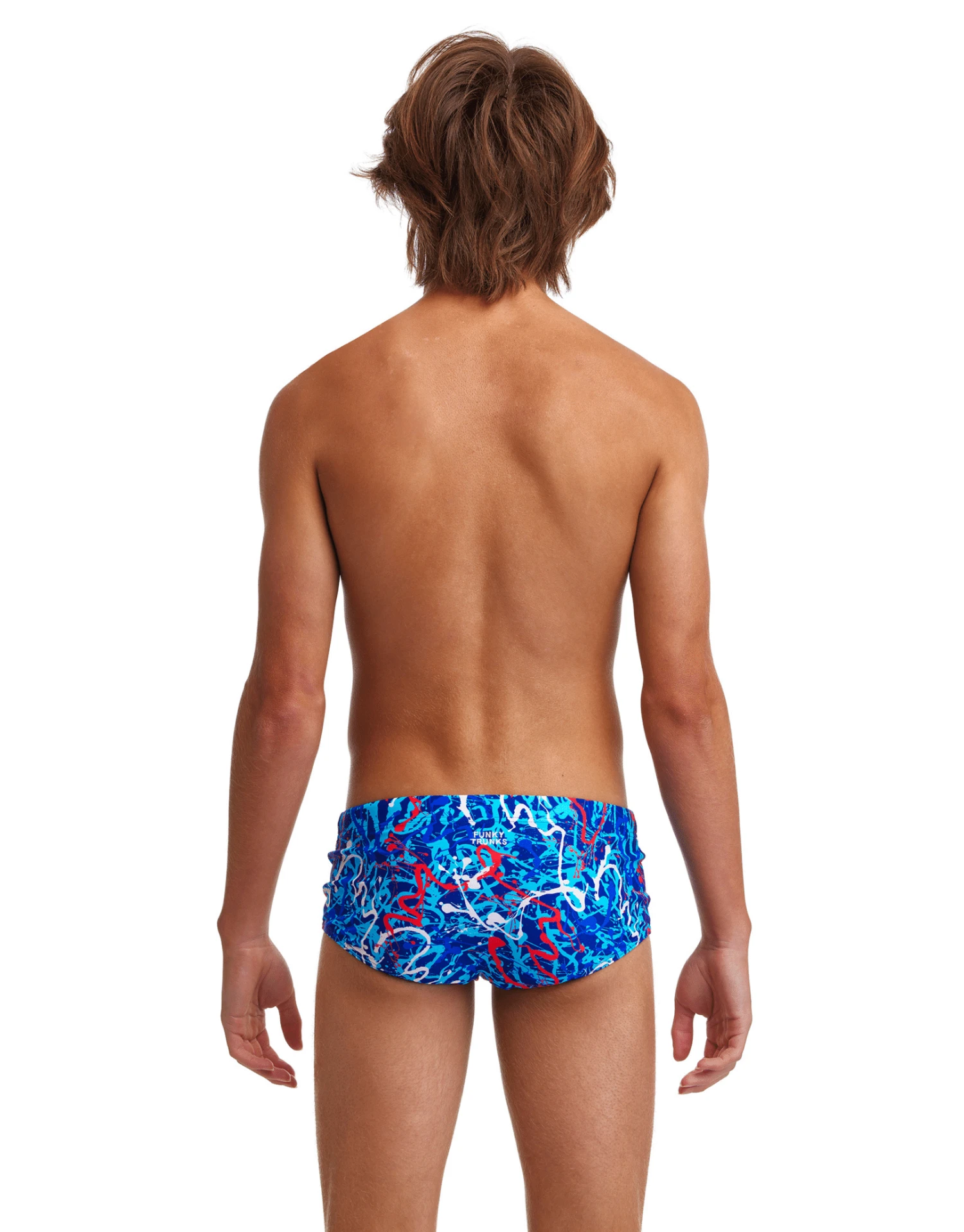 The Boys Mr Squiggle Swim Trunks from Funky Trunks offers a drawcord to keep them locked in position and a wide elastic leg opening and waistband for added comfort around your hips and legs. Well made for durability and comfort, these trunks are made from 100% Italian polyester in Funky Trunks C-Infinity fabric, a 100% Italian polyester that is a colourful breakthrough in chlorine-resistant fabric technology. This print is designed to be like paint splatter on a canvas and is a repeating pattern, each product will look slightly different. We can’t guarantee that what you see in a photo is exactly what you’ll get, but it does mean you will be an individual!