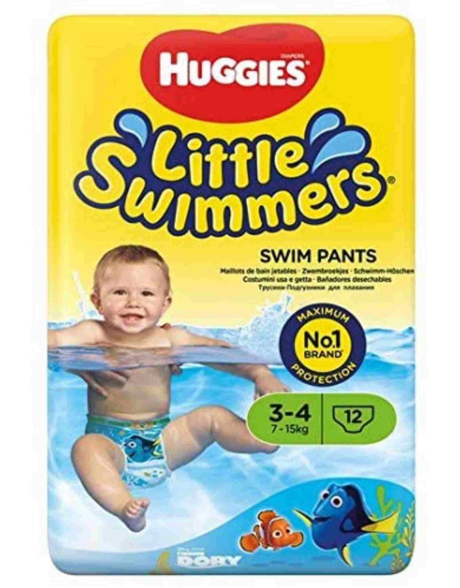 These Huggies Little Swimmers Swim Nappies are designed with a fun Finding Dory print. Huggies are the No1 Brand for maximum protection. All are equipped with leak guards and stretchy waistbands for extra comfort. Age 2-3 also has an easy lie-down changing tab. Age 4-5 and 5-6 both have tear sides for easy removal.