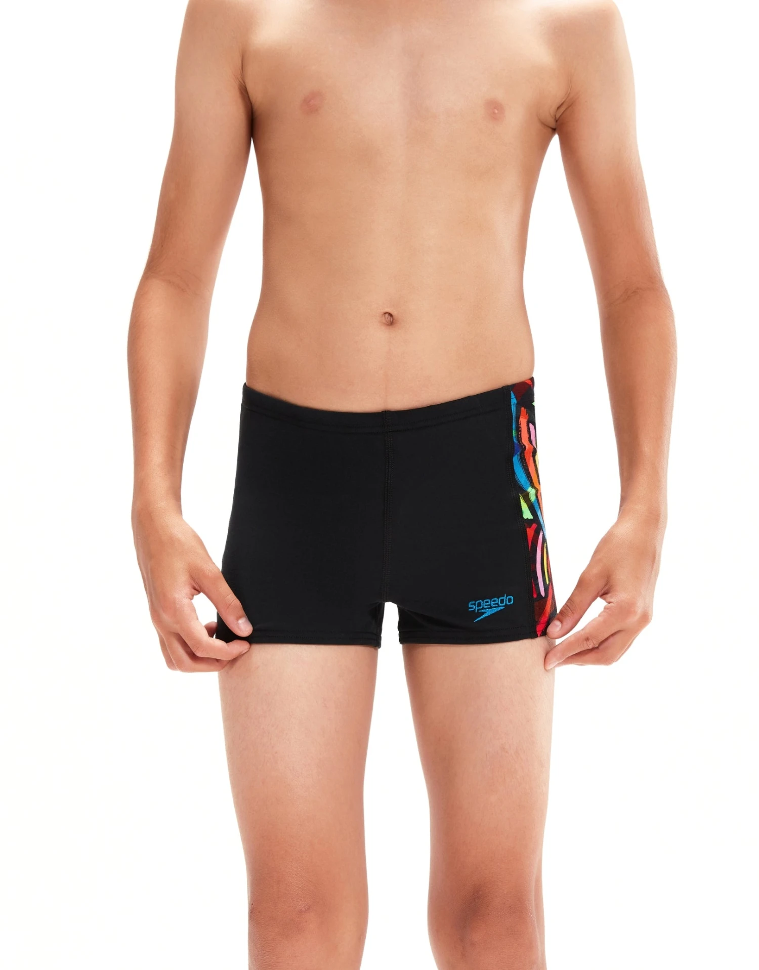 The Speedo Boys Digital Panel Aquashort features eye-catching side panels of our brightly coloured ‘brushstrokes’ print. Lined at the front for comfort and modesty, the aquashort includes an internal drawcord to allow young swimmers to adjust the fit. Designed to be durable and better for the environment, made from ECO Endurance+ fabric, which is 100% chlorine resistant, quick-drying and developed using 50% recycled materials.