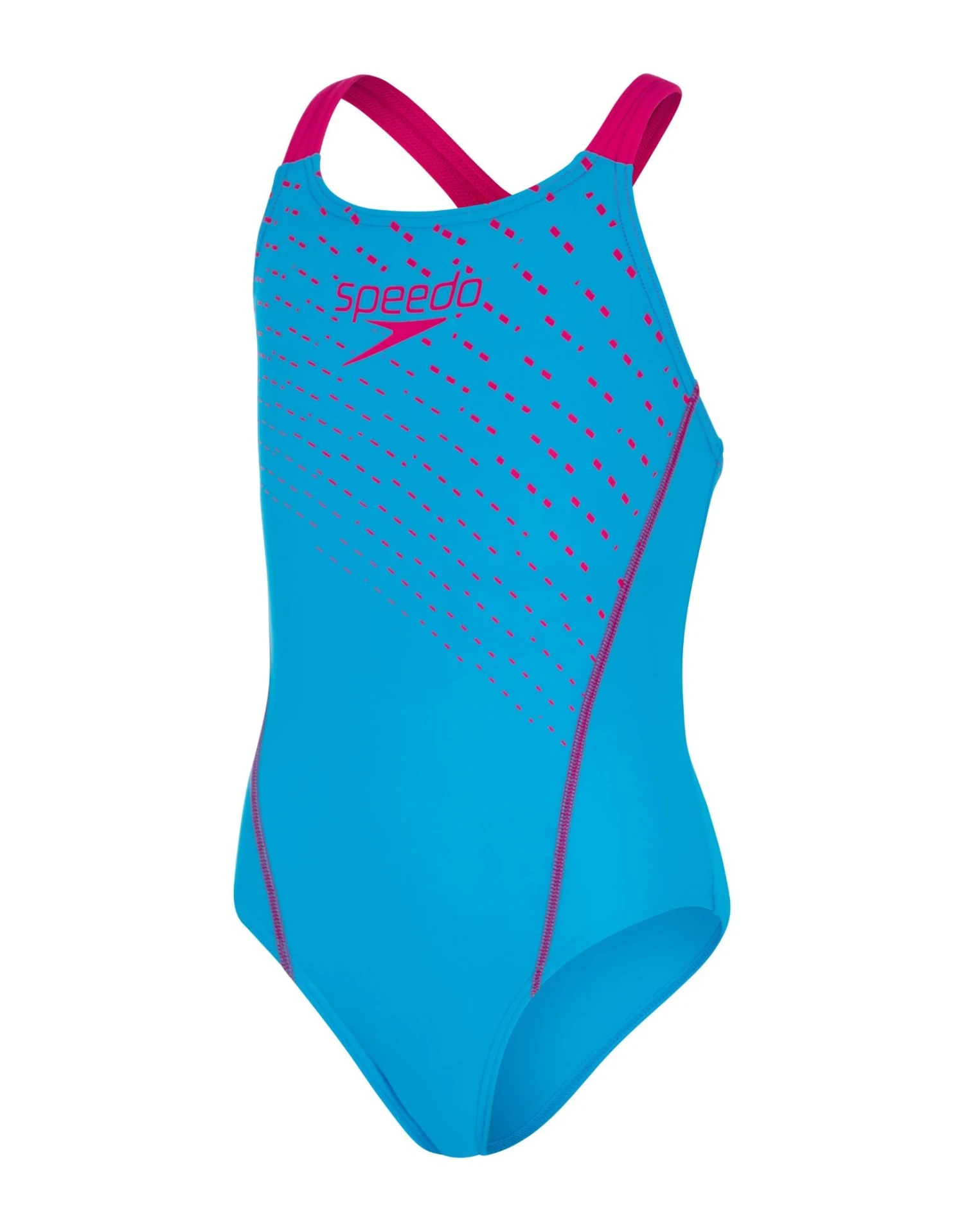 The Girls Medley Logo Medalist Swimsuit from Speedo is designed with an eye-catching kinetic wave print and colour-pop seams and straps. Made from the ECO EnduraFlex fabric, it provides higher chlorine resistance and lasts longer with CREORA HighClo. Featuring front and back lining, the medalist design offers greater freedom of movement and flexibility and is ideal for regular pool sessions.