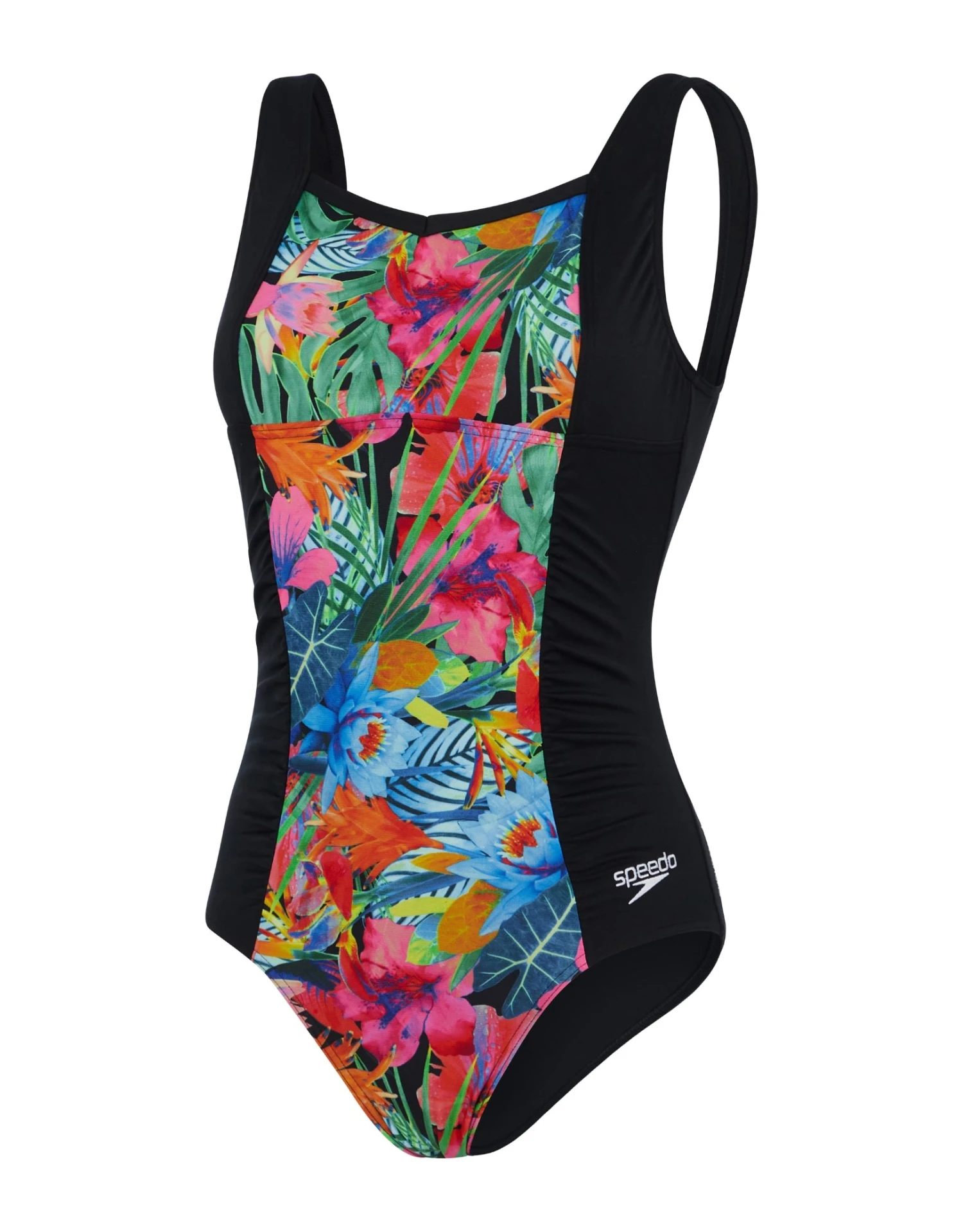 The Printed Contour Shaping Swimsuit from Speedo is designed with a montage of photo-real tropical floral prints. The scoop back design allows you easily get in and out of the swimsuit while the lined bust support and low leg height provide great coverage when swimming. Made from durable and quick-drying Eco Endurance+ fabric, this swimsuit offers 100% chlorine resistance and long-lasting performance.