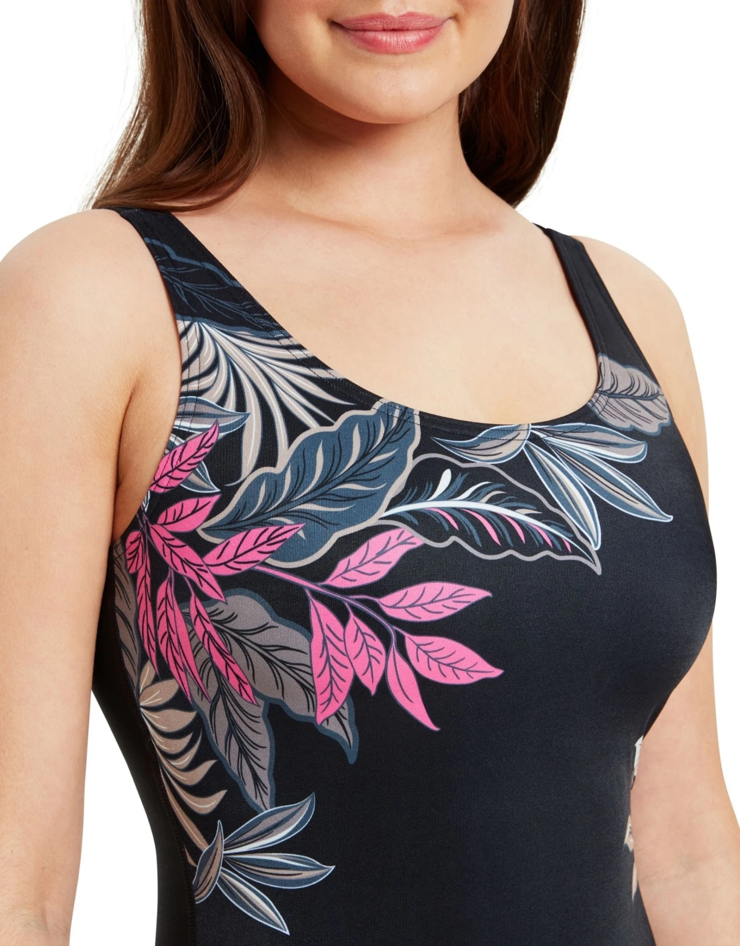 The Aruba Adjustable Scoopback is another of Zoggs most desirable swimsuits. With fixed foam cups, tummy control, medium leg height and adjustable straps all on Zoggs best Ecolast fabric. With a beautiful floral print that compliments the figure. You will be guaranteed to look and feel great.