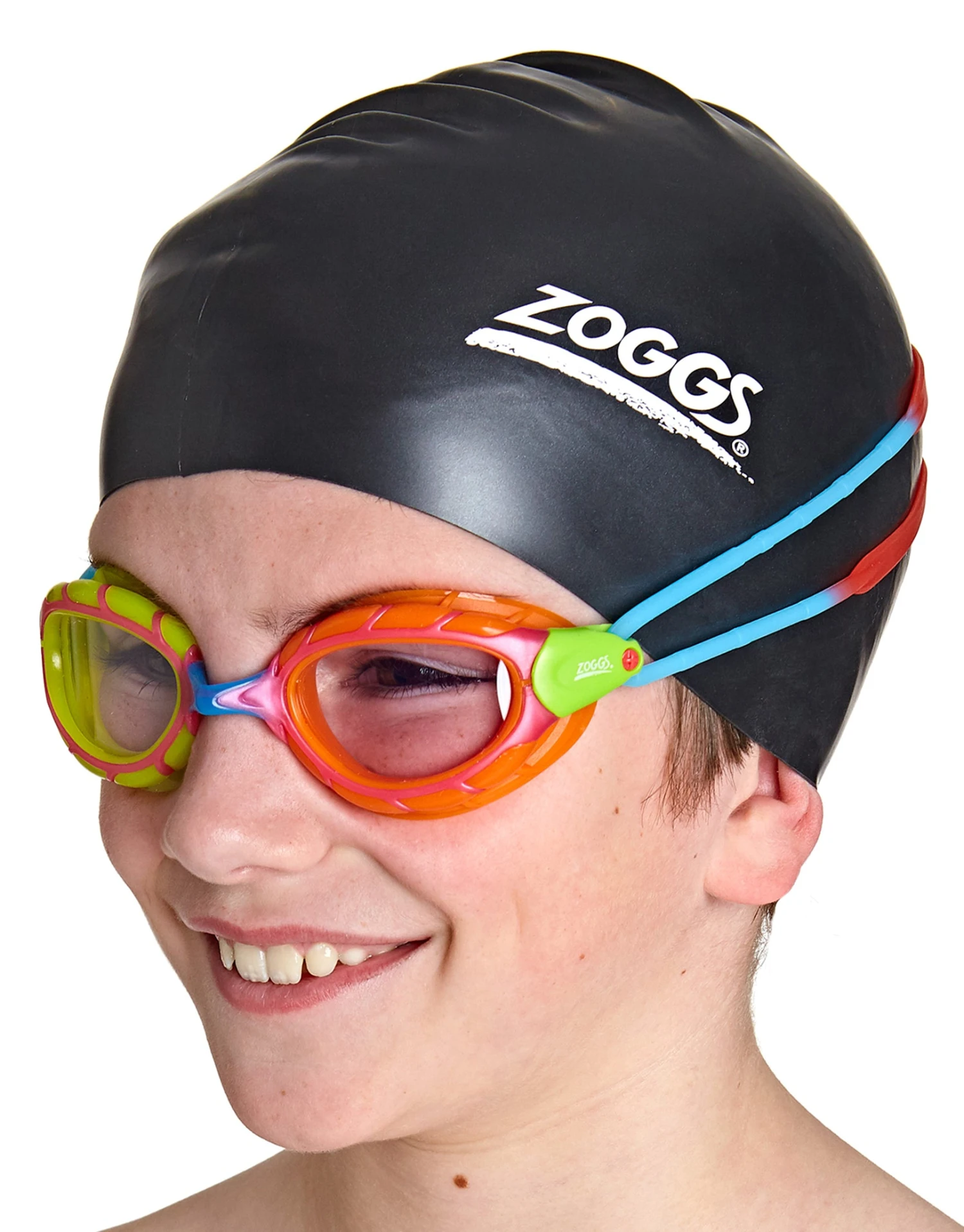 The Zoggs Junior Predator Goggle is a performance swimming goggle for young swimmers aged 6-14 years olds and is Fina approved for racing in Fina events. Junior swimmers will love the fun colourways and the double band head strap and pulley adjust system to give a balanced, secure, and comfortable fit.